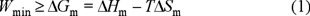 Para lograr la separación de una mezcla formada espontáneamente, es necesario suministrar una cantidad de energía igual o mayor a la energía libre de mezclado ΔGm, a esta cantidad de energía se le conoce como el trabajo mínimo para efectuar la separación Wmin, y puede ser proporcionada por medio de energía en forma de calor o de trabajo mecánico.