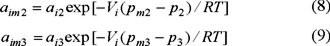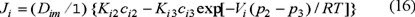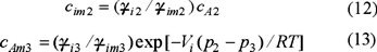 Si se define al coeficiente de partición, K, como la relación de coeficientes de actividad para cada componente (γi2 / γim2 o γi3 / γim3), sustituyendo su valor en las ecuaciones (12 y 13), obtenemos:
