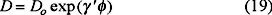 Donde Do es el coeficiente de difusión a disolución infinita y γ´ es el llamado coeficiente de plasticidad, el cual refleja el incremento en el volumen libre en la red de polímero, después de la absorción del disolvente. Esta expresión se empleó para calcular el coeficiente de plasticidad a partir de datos de Doi reportados por Favre (1994) y los valores de D calculados con la ecuación (23).