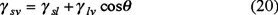 El ángulo de contacto θ para el mojado, se forma por el efecto de las tres tensiones interfaciales entre el sólido, el líquido y el gas, de acuerdo con la ecuación de Young: