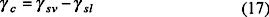 Para encontrar experimentalmente la tensión superficial crítica, se miden ángulos de contacto a temperatura constante entre la membrana polimérica sólida con varios líquidos, corresponde al valor de γc el valor de la tensión superficial del líquido cuando el valor de cos θ = 1. Entonces, la γc esta dada por la siguiente ecuación: