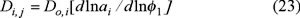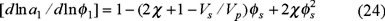 En la ecuación (24), cuando el sistema se acerca a la idealidad, es decir, cuando la fracción en volumen de penetrante es muy pequeña φi → 0, entonces, [d ln ai / d ln φi] → 1.
