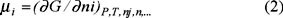 Cuando dos compuestos se mezclan, la entalpía libre de mezclado está determinada por las entalpías libres parciales de cada componente, es decir por sus potenciales químicos: