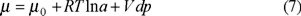Donde µ0 es el potencial químico del compuesto puro a una presión de referencia, el equilibrio termodinámico entre ambas caras de la membrana para la especie i se puede escribir como: