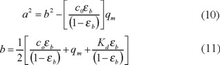 Los parámetros que caracterizan el equilibrio del sistema: la capacidad máxima de adsorción, qm, y la constante de disociación de equilibrio, Kd = k-1 / k1, pueden ser estimadas a partir de datos del sistema de adsorción por lotes en equilibrio. El parámetro cinético k1 puede ser calculado de datos de adsorción dinámicos obtenidos en sistemas por lotes o en columnas [16, 18]. El coeficiente de transferencia de masa, kf, puede ser estimado mediante correlaciones empíricas [12]. La difusividad intrapartícula, Di, puede estimarse mediante experimentos de adsorción por afinidad en lotes o en columna de acuerdo a los procedimientos detallados reportados en la literatura [4]. Este parámetro también ha sido estimado en forma precisa utilizando modelos generados para adsorbentes de estructura porosa obtenidos mediante la teoría de redes. Esta teoría representa en forma apropiada la naturaleza discreta de las estructuras porosas de los medios cromatográficos y sirve para describir la difusión restringida dentro del poro [25-27]. En algunos trabajos recientes, la difusividad efectiva dentro del poro ha sido estimada combinando el método experimental de la microscopía laser de escaneo confocal con los modelos matemáticos de adsorción [28-31].