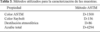 Las diferentes muestras se caracterizaron mediante los métodos ASTM que se reportan en la Tabla 3.