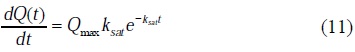 Where ksat is the saturation constant of ozone in water (s−1) and Qmax is the maximum amount of ozone in the saturation state of the liquid phase (mole) at a fixed temperature.