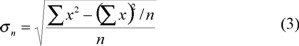 Desviación estándar de los datos experimentales. La desviación estándar media, σn, para tres experimentos (5, 12 y 8 h) fueron calculadas usando la ecuación (3), con los datos de 6 corridas independientes, tal y como se describe en la literatura [24]: