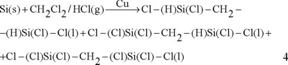 Otros autores han reinvestigado la reacción con el propósito de sintetizar otro tipo de compuestos potencialmente útiles como materias primas en la preparación de nuevos polímeros funcionalizados de silicio. Con tal propósito, Il Nam Jung [4] mostró el efecto de usar cloruro de metileno en fase gaseosa mezclado con cloruro de hidrógeno: