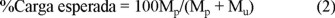 Donde Mu es el peso molecular de la unidad monomérica básica, χx es la fracción de grupos ácidos, Mx es el peso molecular del monómero ácido y My es el peso molecular del monómero ácido protegido (véase figura 1, al monómero ácido se le debe eliminar el protón ionizable para calcular Mx). Considerando que una unidad monomérica (anión) se une a una molécula de propranolol protonado (catión), la carga esperada se obtiene usando ecuación 2: