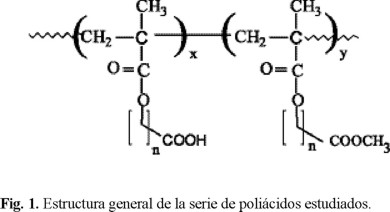 Recientemente desarrollamos los pasos de síntesis para una nueva serie de poli(metacrilatos de carboxialquilo) los cuales contienen unidades repetitivas hidrofóbicas con grupos ácido carboxílico terminal como se observa en la figura 1 [10].