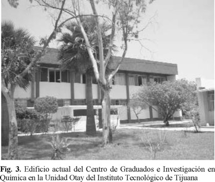 En Junio de 1982 [2] se colocó la primera piedra de lo que es ahora el Centro de Graduados e Investigación en la Mesa de Otay. El Centro como actualmente se encuentra (Fig. 3) terminó de construirse en 1986. Para entonces su nombre había sido cambiado a Centro de Graduados e Investigación en Química, CGIQ.