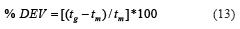 Uno de los parámetros de evaluación usado en este estudio se fundamentó en el porcentaje de desviación (% DEV), que existe entre las temperaturas geotermométricas de Na/K y las temperaturas de fondo medidas en los pozos. Este porcentaje se determinó mediante la ecuación sugerida por Vermay Santoyo (1997):