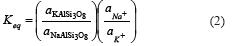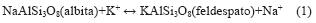 Chiodini et al,. (1991), Arnórsson (2000b), y Stefánsson y Arnórsson (2000) reportan, en estudios termodinámicos realizados para evaluar el estado de saturación de feldespatos de albita y microclina, que ambos minerales presentan estructuras cristalinas ordenadas con respecto a AlSi, y que su proceso de intercambio iónico puede ser confiablemente evaluado a través de la siguiente reacción de equilibrio (soluciónmineral):