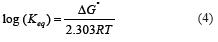 Por otro lado, la constante de equilibrio (Keq) de la Reacción 1 se puede relacionar también a través de la energía libre de Gibbs (ΔG°) mediante la siguiente ecuación:
