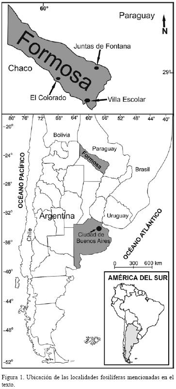 En este contexto, los aportes al conocimiento de la composición de la megafauna pleistocena del extremo norte de Argentina (29° S21° S) son escasos. Más concretamente, la provincia de Formosa (Figura 1) es una de las más pobremente estudiadas en este aspecto, ya que sólo se conoce a partir de algunas contribuciones aisladas (Tonni y ScillatoYané, 1997; Alcaraz y Zurita, 2004; Prevosti et al., 2005). Es destacable que de estas contribuciones, sólo la de Tonni y ScillatoYané (1997) corresponde a una fauna de mamíferos pleistocenos, actualmente depositados en las colecciones de la Facultad de Ciencias Naturales y Museo de La Plata (MLP), y que provienen de las barrancas del río Pilcomayo (Juntas de Fontana) (Figura 1).