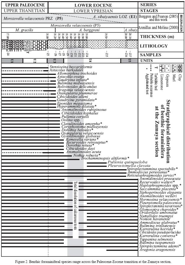 The detailed analysis of benthic foraminifers from the Zumaya section allow us to identify several assemblages through the uppermost Paleocene and lowermost Eocene interval: