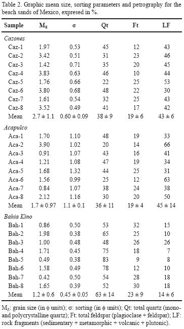 Some authors have analyzed the textural characteristics of beach sands along the coastal regions of Mexico (Marsaglia, 1991; CarranzaEdwards and RosalesHoz, 1995; CarranzaEdwards et al., 1998, 2009; CarranzaEdwards, 2001; KasperZubillaga and Dickinson, 2001; Okazaki et al., 2001; KasperZubillaga and CarranzaEdwards, 2005; Madhavaraju et al., 2009). These studies described clearly the grain size and textural differences among different depositional environments. Other studies on geochemistry of beach sands of Mexico are focused on heavy metals (RosalesHoz and CarranzaEdwards, 1998; RosalesHoz et al., 1999, 2003). On the basis of geochemistry of beach sands in the western Gulf of Mexico, KasperZubillaga et al. (1999) suggested that the geochemistry of beach sands are highly useful to identify the tectonic setting of a sedimentary basin. CarranzaEdwards et al. (2001) concluded that the REE, Th, Sc, and Hf concentrations in beach sands of western Mexico are associated with source rock composition than to heavy minerals. Recent studies by KasperZubillaga et al. (2008a, 2008b) discussed about the textural and geochemical discriminations between desert and coastal dune sands of northwestern Mexico.
