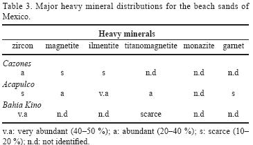 Provenance of sands from Cazones, Acapulco, and Bahía Kino beaches, Mexico