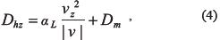 ). Además, si se considera que para este trabajo sólo se realiza la modelización en una dimensión (z), cualesquier otras componentes en x y en y se cancelan. De este modo, se tiene que el tensor de dispersión hidrodinámica en la dirección z (Dhz) puede escribirse como: