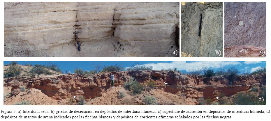 Las asociación de estructuras de pronunciada pedogénesis (bioturbación, estructuras en bloques, moteados y trazas de raíces) que caracteriza el tope de estas grandes dunas evidencian períodos de estabilización (Kocurek, 1981; Kocurek, 1988; Kocurek y Havholm, 1993; Rodríguez-López et al., 2012a).