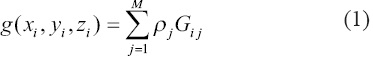 en donde ρj es la densidad de j-ésimo prisma, M=Me×Mc×Mr es el número de prismas en el cuboide, y