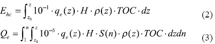Where Ehc represents the hydrocarbon expulsion intensity in t/km2; qe(z) represents the hydrocarbon expulsion ratio per unit of organic carbon in mg/g; Qe represents the hydrocarbon expulsion amount in t; Z represents the burial depth in m; Z0 represents the hydrocarbon expulsion threshold; p(z) represents the density of source rocks in g/ cm3; TOC represents the organic carbon mass fraction in wt%; H represents the thickness of source rocks in m; S(n) represents the area of source rocks in m2.