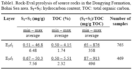 Many studies of source rocks of the Shahejie Formation have been conducted (Chi, 2001; Hu et al., 2001; Wang and Zhang, 2003; Jiang et al., 2010a), while systematic and further research on the source rocks of E3d is rare (Li et al., 2001; Huang and Li, 2002). With recent exploration practices, oil and gas discoveries in E3d has increased greatly (Wang et al., 2006). Therefore, the comprehensive study of the effectiveness and hydrocarbon supply capacity of the source rocks in E3d and their variation in different sags is of great geologic significance for furthering the recognition of oil and gas sources and expanding the exploration extent in the Bohai Sea area. Especially, with the development of seismic exploration in recent years, plenty of geologic and geochemical data of source rocks have been obtained, enabling systematic evaluation of source rocks. Aiming at the existing problems in exploration, combining with the new recognition of the regional structural evolution history and sedimentary facies distribution, by systematically analyzing drilling data and geochemical data, in this paper the ESR of E3d are identified and their hydrocarbon expulsion history is outlined. The study provides reference information on oil and gas resource potential to guide exploration directions in the Bohai Sea area.