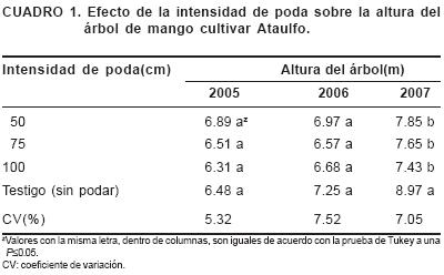 Intensidad de poda sobre el vigor, producción y peso del fruto, del mango 'Ataulfo'