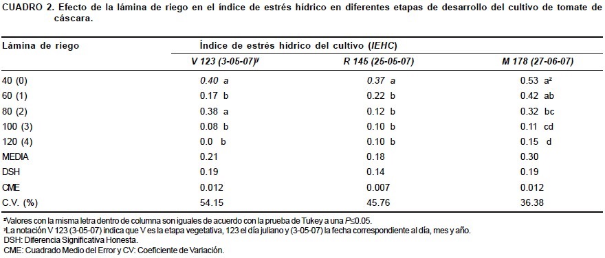 Índice de estrés hídrico del cultivo de tomate de cáscara (Physalis ixocarpa Brot.)