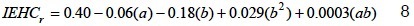 donde a es el efecto del acolchado plástico; b representa la lámina de riego de Penman-Monteith; y ab es el efecto de interacción del plástico con la lámina de riego. Los coeficientes de determinación (r2) son aceptables, e indican que los modelos predicen en forma aceptable el IEHC y los cuadrados medio del error son relativamente pequeños.