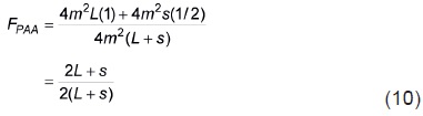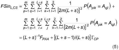 Similarmente, FSinL'SC puede expresarse en términos del coeficiente de endogamia promedio de las poblaciones que resultan del apareamiento aleatorio de los m individuos de cada progenitor (FPAA) y de la coancestría de las (L+s) (L + s 1) cruzas directas y recíprocas entre los L + s progenitores Γcp . Así, de la Ecuación 2 y de su adecuación al FSinL'CS, expresado como una combinación lineal de FPAA y de Γcp resulta que
