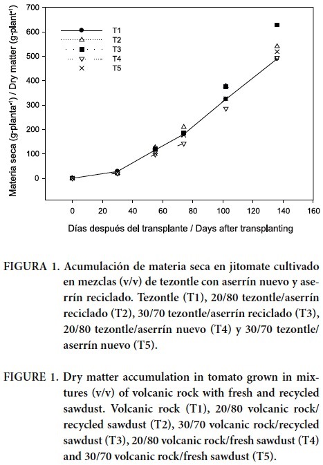 Las mezclas de tezontle con aserrín reciclado (30:70 y 20/80, v/v) produjeron un rendimiento de fruto y absorción nutrimental muy similares al tezontle y mezclas de tezontle con aserrín nuevo (20/80 y 30/70, v/v).