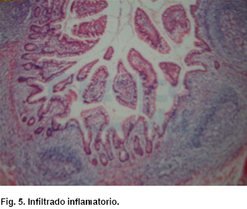 • Descripción microscópica: Infiltrado inflamatorio (Figura 5) y cambios necróticos (Figura 6).