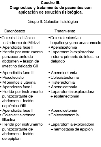 De los 22 pacientes incluidos en la investigación, 11 corresponden al grupo al que se aplicó lidocaína al 2% simple y 11 al grupo al que se le aplicó solución fisiológica al 0.9%. Las cirugías más frecuentes fueron las apendicectomías, en número de 9. Con respecto a la presencia de infección de la herida quirúrgica, ésta se encontró en un total de 3 (27%) de los 11 pacientes del grupo en el que se aplicó solución fisiológica al 0.9% (10 ml); sin presentarse ningún caso de infección de la herida en el grupo de los 11 a los cuales se les aplicó lidocaína simple al 2% (10 ml). De las infeccione observadas, dos presentaron desarrollo de Pseudomonas ssp. en los cultivos de material de la herida quirúrgica, sensibles a imipenem y ciprofloxacino y correspondieron a una paciente mujer de 36 años, en quien se realizó una hepatoyeyuno anastomosis, con un tiempo de duración de 185 min. La otra paciente infectada corresponde a una mujer de 42 años, en quien se realizó una histerectomía por presentar miomatosis uterina, con una duración de la cirugía de aproximadamente 120 minutos. La tercera infección se presentó en una paciente mujer de 42 años, en quien se realizó una laparotomía exploradora con duración de 90 minutos por presentar una herida por instrumento punzocortante de abdomen con lesión de intestino delgado, quien presentó en el cultivo de material de la herida quirúrgica el desarrollo de Staphylococcus haemolyticus en el cultivo, sensible a metilciclina y dicloxacilina. En cuanto a los días de hospitalización fueron en promedio de 6 días para el grupo en el que se aplicó solución fisiológica al 0.9%, con rangos de 1 a 18 días y 5.5 días en promedio para el grupo en el que se aplicó lidocaína simple al 2% con rango de 2 a 6 días. Sólo hubo un reingreso en una paciente infectada en quien se aplicó en la herida quirúrgica, al término de la cirugía, solución fisiológica al 0.9%.