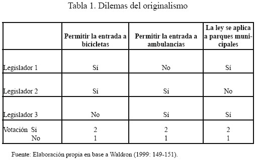9 Debo decir, no obstante, que en un artículo escrito en el año 2004 Waldron incorpora matices que, según creo, lo llevan a apartarse del textualismo (véase Waldron, 2004). En este artículo Waldron exhorta a los jueces no sólo a identificar las normas por sus "fuentes" (su sanción conforme a reglas superiores) y a poner el acento en el sentido literal texto, sino a "ampliar la clase de evaluaciones comprometidas en la jurisprudencia", evaluaciones que obligan a recurrir a la teoría de la democracia.