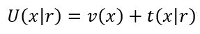 En donde v(x) representa la utilidad derivada del resultado final y t(x|r) representa la utilidad derivada del cambio respecto del punto de referencia. Si t(x|r) = 0, entonces la función de utilidad se reduce a la versión convencional U(x) = v(x), por el contrario, si v(x) = 0, entonces la función de utilidad depende completamente del punto de referencia U(r) = t(r), pero si t(x|r) > 0 y v(x) > 0, entonces U(x|r) es el resultado de la suma ponderada entre v(x) y t(x|r).