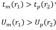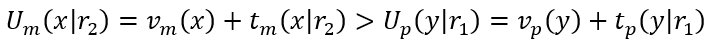 Ahora, a efectos de simplificación, si las funciones de utilidad de m y p dependen completamente de la referencia, entonces vm(x) = vp(y) luego tm(x|r1) > tp(y|r2), es decir,