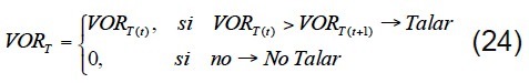 El turno óptimo (TO) de cosecha forestal en ssp se da cuando VORT(t) > VORT(t+1), su expresión matemática es la (24); mientras que en el caso del VAN, la cosecha se da cuando se obtiene el máximo VANT t.