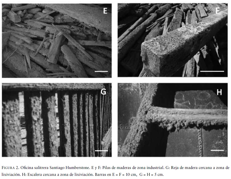 Considerando lo anterior, y en virtud que las oficinas salitreras de Humberstone y Santa Laura están constituidas de manera importante por instalaciones construidas en madera, se desarrolló el presente trabajo cuyo objetivo fue describir el evidente daño, denominado desfibrado, asociado a condiciones de salinidad al que está sometido este sitio del Patrimonio Mundial.