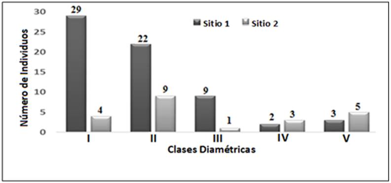 Figura 4 Distribución por clases diamétricas para las áreas estudiadas.