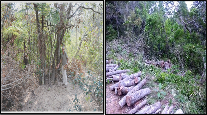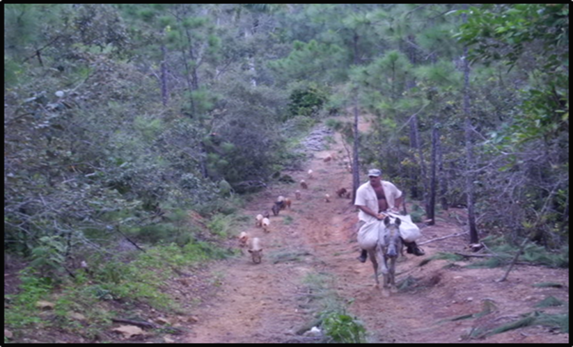En el área más antropizada se observaron arbustos cortados para ser empleados como postes de cerca de potreros para la cría extensiva de cerdos. El finquero encargado del pastoreo de los cerdos plantea que, en la época de fructificación de los encinos, los campesinos de la zona utilizan el área para la cría ilegal, aumentando de forma considerable y desmedida la carga de cerdos en el sitio. Esto trae como resultado el agotamiento de los frutos, con la consiguiente degradación de los suelos y afectaciones en la regeneración natural, viéndose afectada la sucesión natural (Izquierdo et al., 2013) y (Santana et al., 2015).