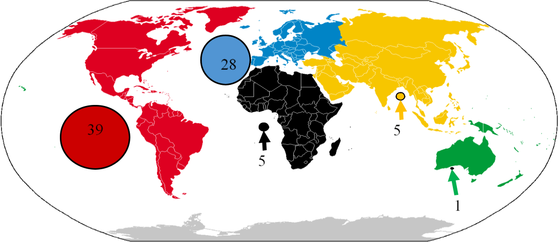 FIGURA 1 Distribución espacial de estudios que utilizan la dendroecología como herramienta en manejo forestal.