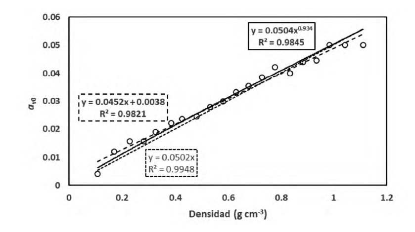 De acuerdo con el modelo A4 (modelo A2 con b v = 1), la relación entre a v0 y ρ debe ser lineal, pasando por el origen, relación (7). Si b v ≠ 1, la relación potencial (7) debe ser usada.