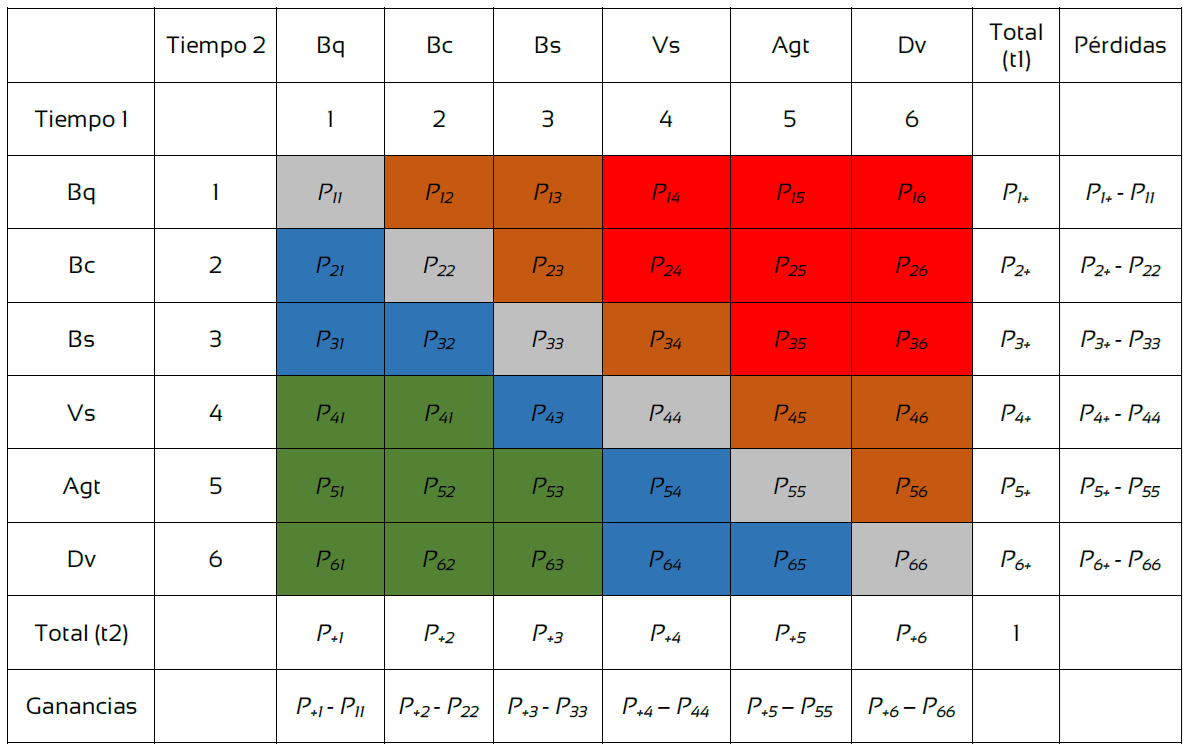 FIGURA 2 Matriz tabulada y dinámicas en la cobertura forestal.