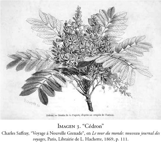 El cedrón, una planta curativa utilizada por los indígenas, estaba enfrentando el proceso de "traslación" de conocimiento indígena a conocimiento científico.41 Tras "raspar las almendras en la cuchara de aguardiente", la planta se convertía en medicina y adquiría un nuevo significado y uso social. En el extracto es visible cómo el procedimiento de "traslación" se convierte en uno de resignificación: los significados y las explicaciones indígenas de la mezcla entre el aguardiente y las semillas raspadas del cedrón como un antídoto para las mordidas de serpientes son ignoradas.42 Si el remedio es efectivo no es, sin embargo, por la lógica indígena. Por el contrario, se debe hacer tabula rasa y buscar las razones científicas para la efectividad del remedio. Por esto Saffray se restringe a comprobar, mediante la observación, la efectividad del remedio. Una vez comprobado se inician los procedimientos de explicación científica, para lo cual "varias personas competentes [... deben practicar] repetidos experimentos en diversas latitudes y climas", encontrando así pruebas y explicaciones suficientes que permitan resignificar la planta en términos científicos.