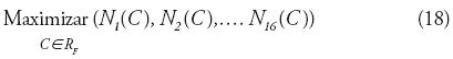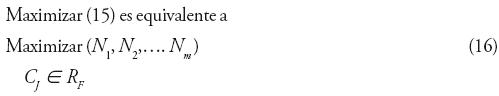 Nmi denota el valor de Ni asociado al mésimo proyecto. Sea C una cartera; el valor de Nt para toda la cartera se calcula de la siguiente forma: Ni (C) = = z150 Ni150 + .... + z Ni150 donde zj = 1 si el jésimo proyecto es apoyado, y zj= 0, de otra forma. El problema es: