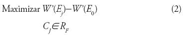 Si se acepta que las preferencias del DM se rigen por W', es posible dar una interpretación cuantitativa del impacto social que para el DM produce una cartera Cj que hace cambiar el estado social al nivel Ej . La medida de impacto I (Cj ) puede definirse como la diferencia W'Ej) W'(E0). Y la cartera de mayor impacto (la mejor cartera factible) es la que maximiza esa diferencia en el conjunto C, que está determinado por las restricciones al presupuesto y a las formas en que puede ser empleado. Luego, optimizar la cartera de proyectos públicos puede definirse como: