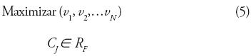donde RF denota la región factible determinada por todas las restricciones presupuéstales que el DM considere conveniente o necesario incluir.