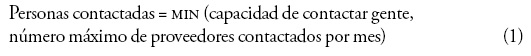 Las influencias externas están representadas en la figura 3 como el proceso de contrabalance B2. Esta influencia externa consiste en una serie de presentaciones públicas y conversaciones individuales conducidas por el BHS, formulada como una función de la capacidad del equipo para contactar gente (lo que a su vez es una función del esfuerzo del equipo en contactar a los proveedores) y los proveedores que todavía no estaban involucrados en el proyecto HIMS (1).
